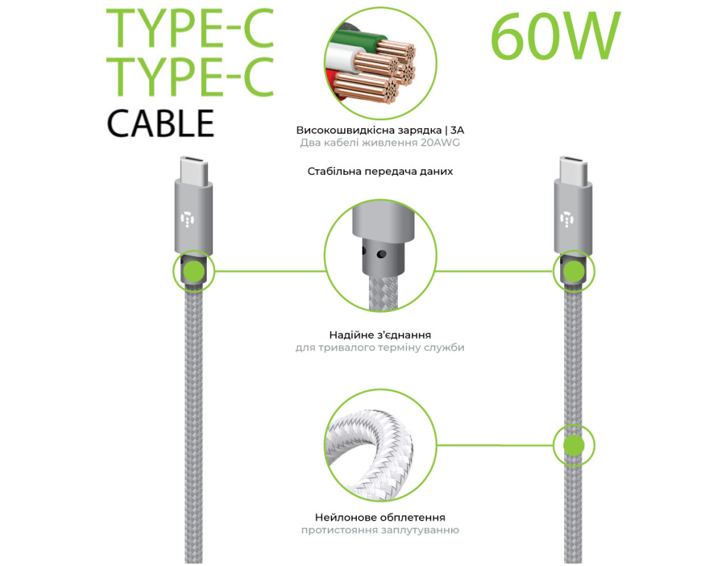 Высокоскоростной кабель Intaleo CBGNYTT1 60W Type-C to Type-C 1 м. Универсальный кабель, который придаст максимальную скорость передачи, а благодаря плетеному нейлоновому покрытию, кабель долго будет сохранять свое качество в местах склонных к заломам. |