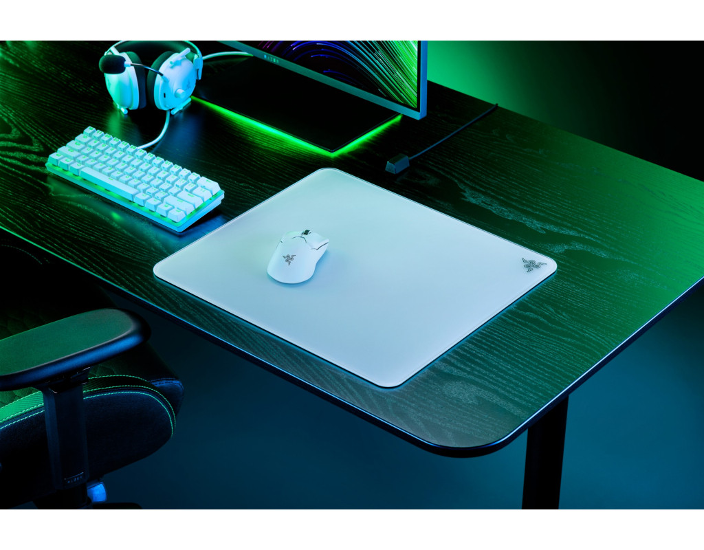 Благодаря сверхнизкому статическому и динамическому сопротивлению стекла твердая поверхность коврика обеспечивает идеальную базу для молниеносных и при этом точных движений мышки.