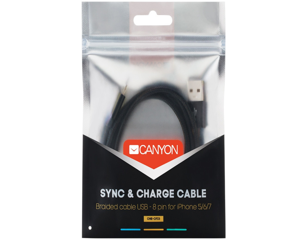 Дата кабель USB 2.0 AM to Lightning 1.0m Black Canyon (CNE-CFI3B)