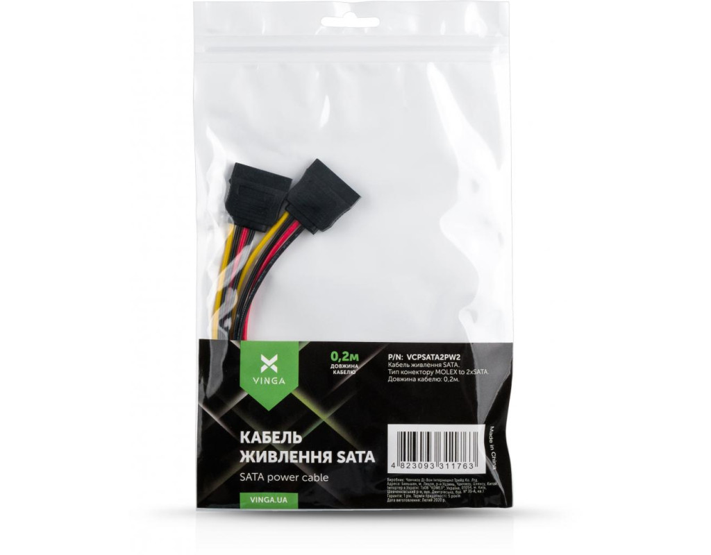 Кабель питания SATA power 0.2m 2 connectors Vinga (VCPSATA2PW2)