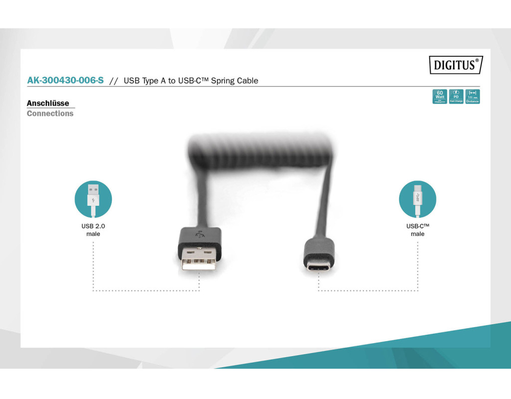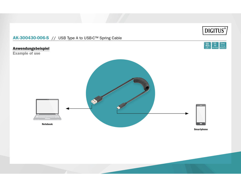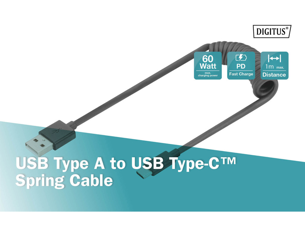 С помощью спирального кабеля DIGITUS USB 2.0 - USB A - USB C вы можете заряжать свои смарт-устройства, такие как смартфоны, планшеты и тому подобное. Мощность зарядки составляет 60 Вт (20 В/3 А). Кроме того, вы можете синхронизировать свои данные с ПК или ноутбуком со скоростью передачи данных 480 Мбит/с. Благодаря гибкой длине и спиральной конструкции его можно использовать в любом месте. Идеально подходит для зарядки смартфона в машине или как запасной кабель для рабочего стола, поскольку кабель легко хранить где угодно. |