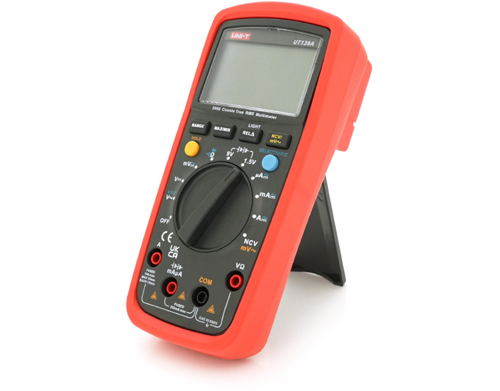 | Мультиметр UNI-T UT139A – це професійний інструмент для вимірювання електричних параметрів з високою точністю та надійністю. Він має широкий спектр функцій, що робить його ідеальним для використання як у домашніх умовах, так і на виробництві. Мультиметр UNI-T UT139A є високоточним приладом з широким функціоналом, який дозволяє проводити вимірювання напруги, струму, опору, частоти та інших параметрів електричних кіл. Характеристики: - Діапазон вимірювання напруги DC: 20мВ – 600В - Діапазон вимірювання напруги AC: 20мВ – 600В - Діапазон вимірювання струму DC: 200мкА – 10А - Діапазон вимірювання струму AC: 200мкА – 10А - Діапазон вимірювання опору: 200Ω - 20MΩ - Вхідний опір DCV: 1ГΩ - Кількість відліків: 2000 - Функція HOLD для фіксації значень - Функція MIN / MAX для запису мінімального та максимального значень - Функція True RMS для точного вимірювання змінного струму та напруги - Функція вимірювання сигналу зі змінною частотою (VFC) - Функція безконтактного детектування високої напруги - Підсвічування дисплея для роботи в умовах недостатнього освітлення - Автоматичне вимкнення приладу при бездіяльності (15 хвилин) - Індикація низького заряду батарей Додаткова інформація: - Дисплей: РКІ 58 мм x 36 мм - Смуга пропускання: 45 Гц – 400 Гц - Тест на провідність - Тестування діодів до 2 В - Відносні виміри - Харчування: 1,5 В x 2 шт. (Типорозмір АА) - Габарити: 175 x 81 x 48,5 мм - Маса: 370 гр. Мультиметр UNI-T UT139A – надійний помічник для проведення електричних вимірювань у різних галузях, від домашніх ремонтів до професійного обладнання. |