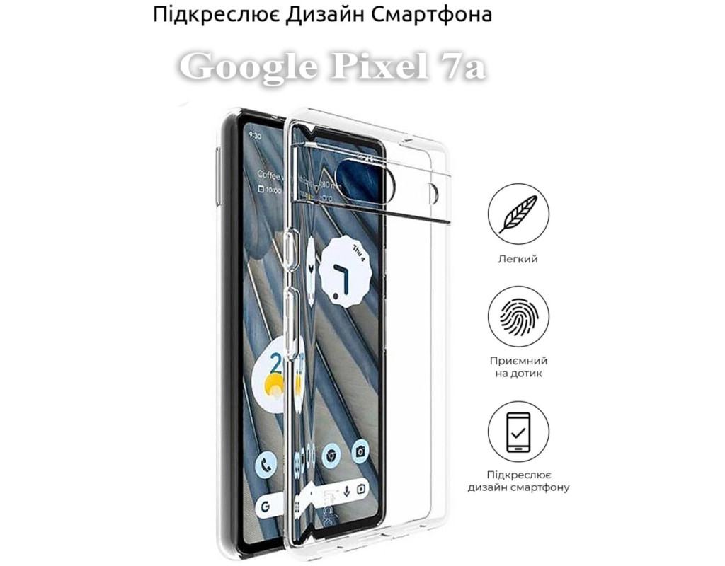 совместимость с моделями - Google Pixel 7a, Тип чехла для телефона - накладка, Назначение - модельный, Материал - силикон, Цвет - прозрачный