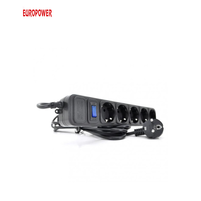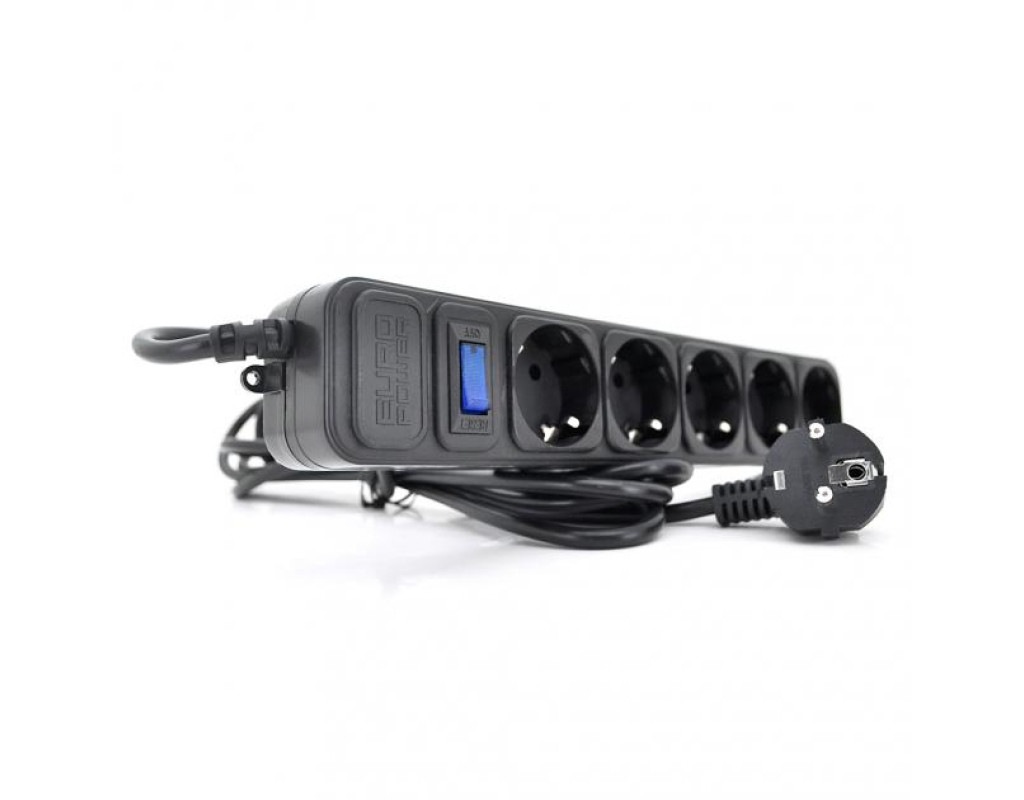Количество розеток - 5, евророзетка с заземлением (Тип F), Длина кабеля - 1.8 м, контакт заземления, с общим выключателем, Суммарная мощность подключенной нагрузки - ≤ 2000 Вт, Цвет - черный