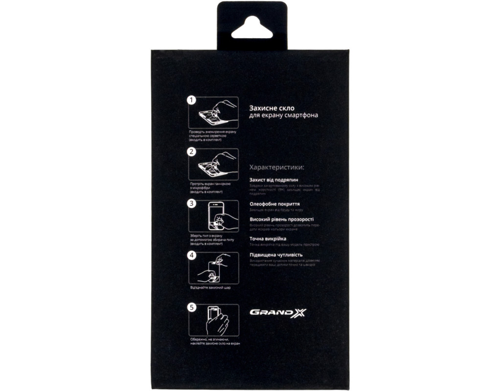 Стекло Grand-X защитит от внешних воздействий таких как царапины, удары, жир и др. В стекле применяются передовые технологии: олеофобное покрытие, закалка стекла, скруглённые края стекла в горизонтальной плоскости. Олеофобное покрытие минимизирует следы от пальцев.