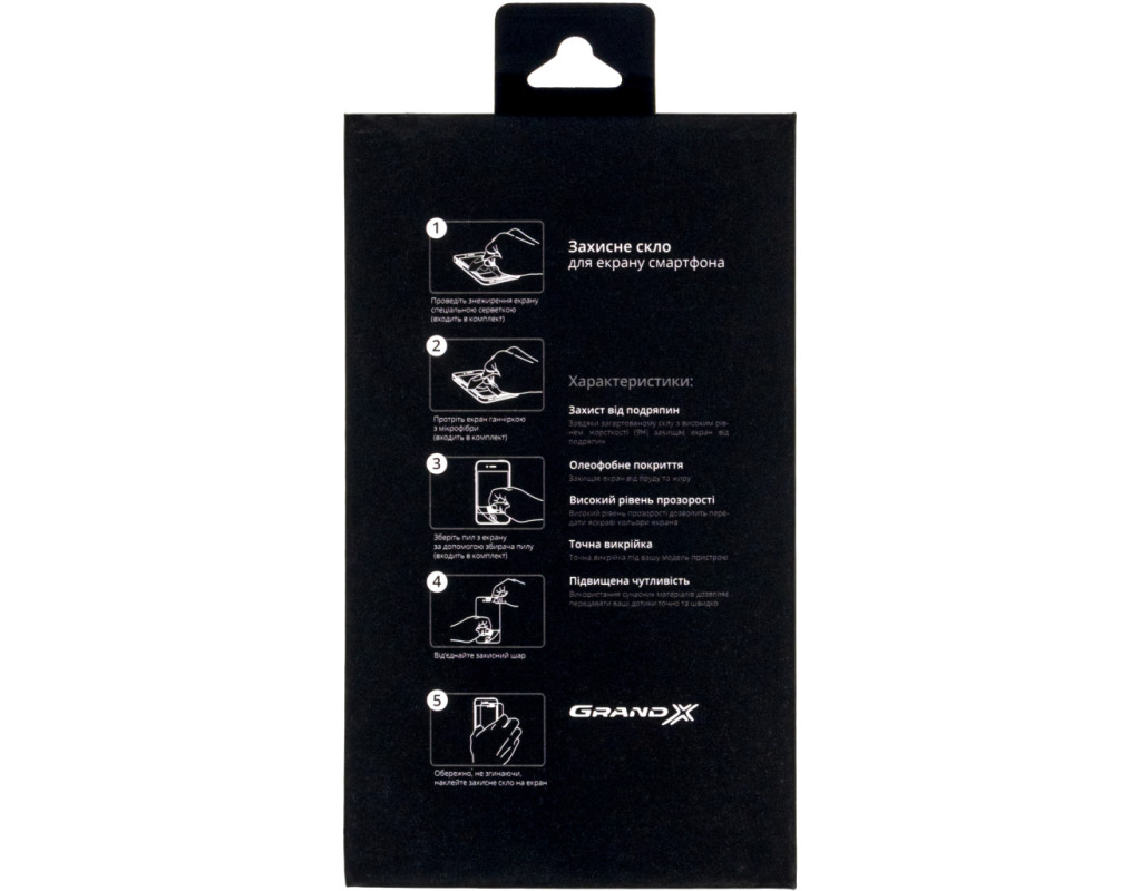 Стекло Grand-X защитит от внешних воздействий таких как царапины, удары, жир и др. В стекле применяются передовые технологии: олеофобное покрытие, закалка стекла, скруглённые края стекла в горизонтальной плоскости. Олеофобное покрытие минимизирует следы от пальцев.