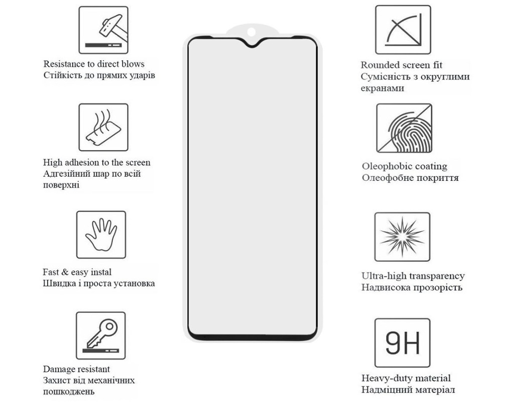 Защитное стекло Drobak Frame A+ Full Glue – это новое высокоэффективное решение для защиты экрана вашего смартфона от царапин, трещин и сколов, изготовлено из инновационного закаленного стекла, очень прочное, чтобы защитить экран телефона при падении на асфальт, при бытовых ударах, при взаимодействии с царапающими предметами.