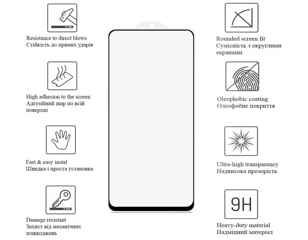 Защитное стекло Drobak Frame A+ Full Glue – это новое высокоэффективное решение для защиты экрана вашего смартфона от царапин, трещин и сколов, изготовлено из инновационного закаленного стекла, очень прочное, чтобы защитить экран телефона при падении на асфальт, при бытовых ударах, при взаимодействии с царапающими предметами.