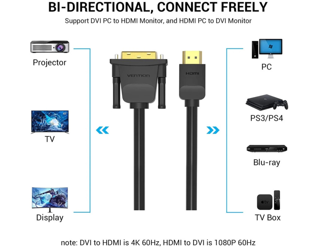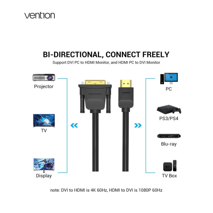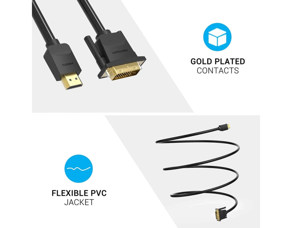Кабель мультимедийный HDMI M to DVI M 2.0m black VENTION (ABFBH)