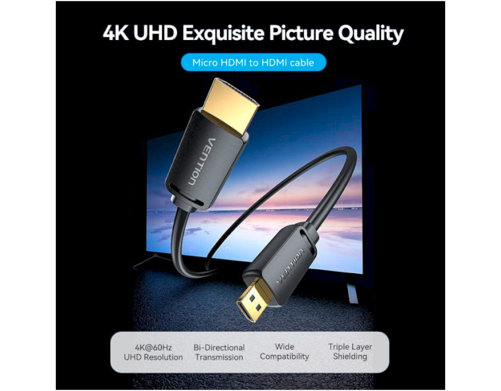 Кабель мультимедийный HDMI to Micro HDMI 1.5m V2.0 4K 60Hz 18Gbps HDR Dolby VENTION (AGIBG)