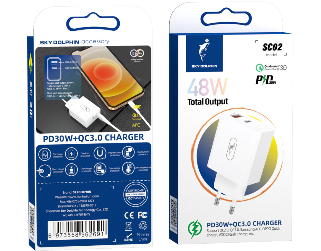 Мережевий зарядний пристрій SkyDolphin SC02 (2USBx2.4A) White (MZP-000185)