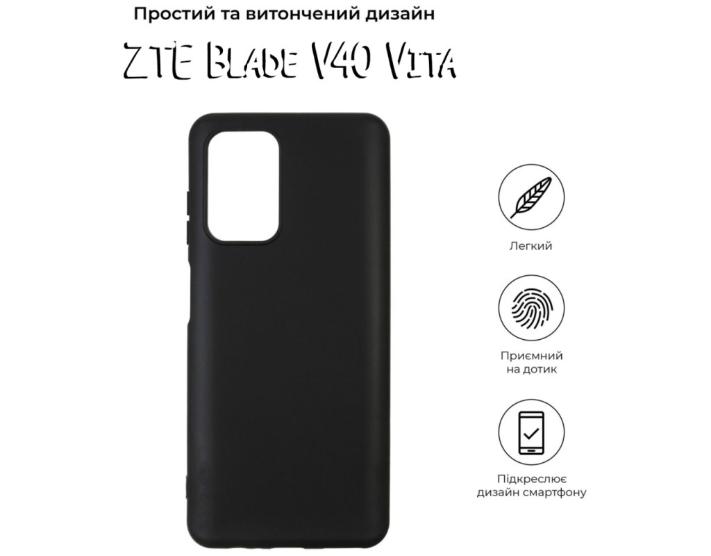 совместимость с моделями - ZTE Blade V40 Vita, Тип чехла для телефона - накладка, Назначение - модельный, Цвет - черный