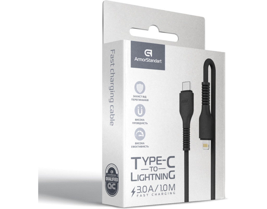 Кабель ArmorStandart AR88 Type-C to Lightning - этот надежный и яркий аксессуар отличаться высокой проводимостью за счет медных жил внутри. Яркий кабель станет отличным дополнением к вашему гаджету. Идеально подойдет для зарядки и синхронизации гаджетов Apple с разъемом Lightning. Так же кабель поддерживает функцию быстрой зарядки и оснащен коннектором Type-C, что позволит зарядить устройство быстро и безопасно от блока питания (ЗУ). Шнур выполнен из высококачественных не возгораемых материалов. Внутреннее жилы сделаны из меди. Верх покрыт поливинилхлоридом. Особенности: