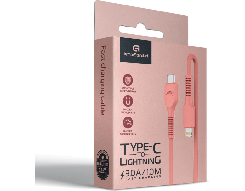 Кабель ArmorStandart AR88 Type-C to Lightning - этот надежный и яркий аксессуар отличаться высокой проводимостью за счет медных жил внутри. Яркий кабель станет отличным дополнением к вашему гаджету. Идеально подойдет для зарядки и синхронизации гаджетов Apple с разъемом Lightning. Так же кабель поддерживает функцию быстрой зарядки и оснащен коннектором Type-C, что позволит зарядить устройство быстро и безопасно от блока питания (ЗУ). Шнур выполнен из высококачественных не возгораемых материалов. Внутреннее жилы сделаны из меди. Верх покрыт поливинилхлоридом. Особенности: