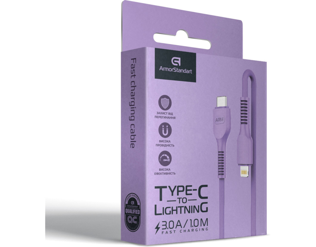 Кабель ArmorStandart AR88 Type-C to Lightning - этот надежный и яркий аксессуар отличаться высокой проводимостью за счет медных жил внутри. Яркий кабель станет отличным дополнением к вашему гаджету. Идеально подойдет для зарядки и синхронизации гаджетов Apple с разъемом Lightning. Так же кабель поддерживает функцию быстрой зарядки и оснащен коннектором Type-C, что позволит зарядить устройство быстро и безопасно от блока питания (ЗУ). Шнур выполнен из высококачественных не возгораемых материалов. Внутреннее жилы сделаны из меди. Верх покрыт поливинилхлоридом. Особенности:
