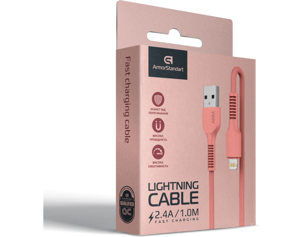 Кабель ArmorStandart AR88 USB to Lightning - этот надежный и яркий аксессуар отличается высокой проводимостью за счет медных жил внутри. Яркий кабель станет отличным дополнением к вашему гаджету. Идеально подойдет для зарядки и синхронизации гаджетов Apple с разъемом Lightning. Так же кабель поддерживает функцию быстрой зарядки и оснащен коннектором USB Type-A, что позволит зарядить устройство быстро и безопасно от блока питания (ЗУ). Шнур выполнен из высококачественных не возгораемых материалов. Внутреннее жилы сделаны из меди. Верх покрыт поливинилхлоридом. Лаконичный и простой дизайн никак не повлиял на прочность кабеля. Высокая устойчивость к изломам и растяжениям. Кабель прослужит вам долгое время. Особенности: