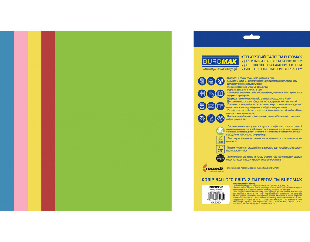 Бумага Buromax А4, 80g, INTENSIVE, 5colors, 50sh, EUROMAX (BM.2721350E-99)
