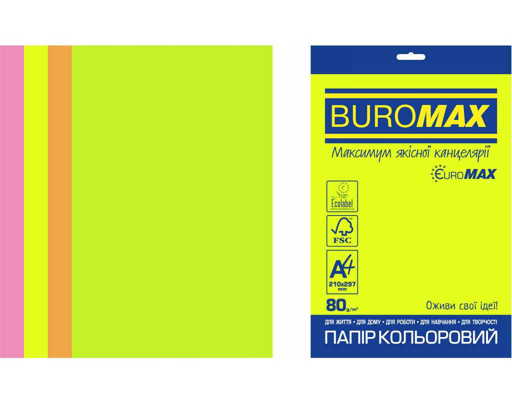 Бумага Buromax А4, 80g, NEON, 4colors, 20sh, EUROMAX (BM.2721520E-99)