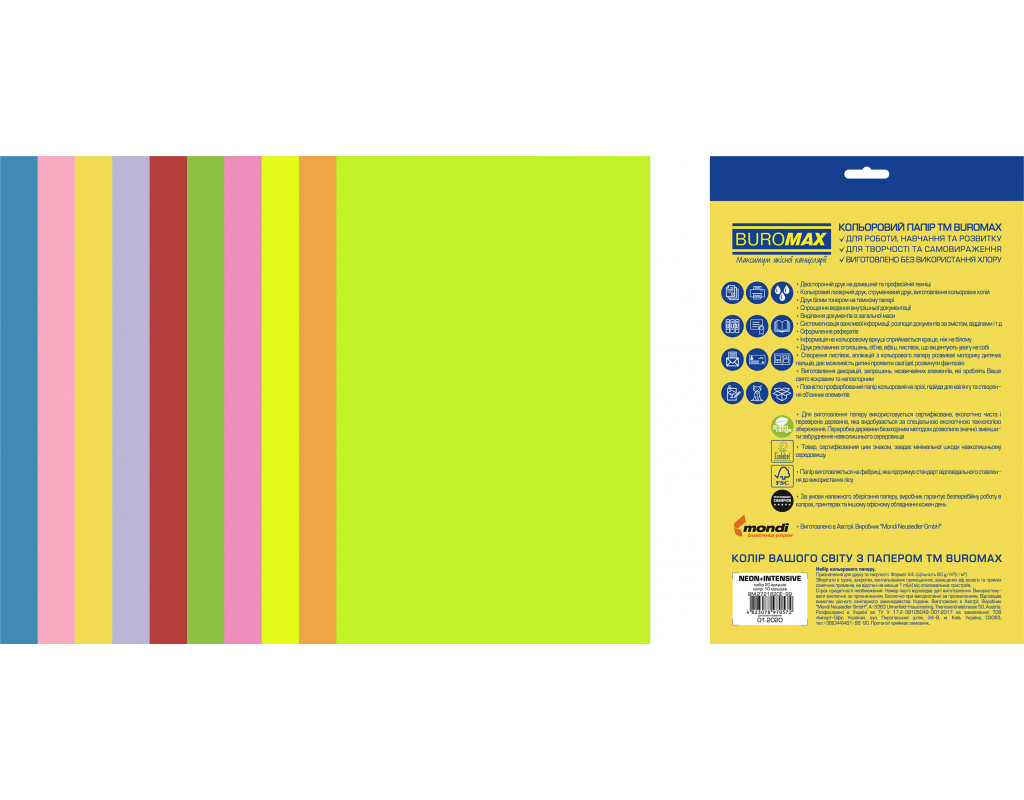 Бумага Buromax А4, 80g, NEON+INTENSIVE, 10colors, 20sh, EUROMAX (BM.2721820E-99)