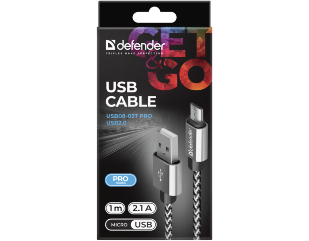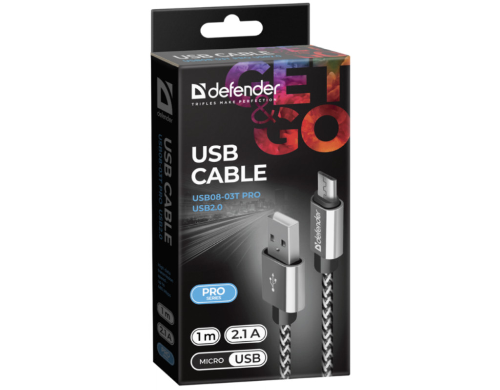 Дата кабель USB 2.0 AM to Micro 5P 1.0m USB08-03T PRO white Defender (87803)