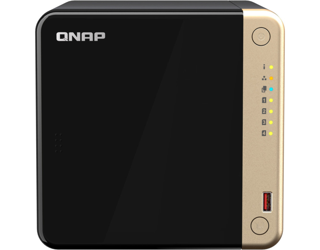 Модернизация до двухпортовой 10GbE с помощью сетевой карты PCIe Благодаря превосходной аппаратной конструкции вы можете установить в TS-464 двухпортовую сетевую карту 10GbE QXG-10G2TB. Сочетание сетевой технологии 10GbE, четырехъядерного процессора и кэширования на твердотельных накопителях M.2 позволяет полностью раскрыть потенциал производительности TS-464. Увеличение емкости хранилища до 16 жестких дисков TS-464 поддерживает емкость хранения до 66 ТБ благодаря установке четырех 3,5-дюймовых жестких дисков емкостью 22 ТБ в RAID 5. Подключив блок расширения хранилища TL-D1600S QNAP, вы можете добавить к TS-464 еще двенадцать жестких дисков и получить до 280 ТБ дискового пространства, чтобы удовлетворить растущие потребности в хранении данных. Резервное копирование в одно касание с помощью USB 3.2 Gen 2 TS-464 оснащен двумя портами USB 3.2 Gen 2 со скоростью 10 Гбит/с для более быстрой передачи файлов на устройства USB 3.2 Gen 2 и с них. Кнопка One Touch Copy также позволяет создавать резервные копии содержимого USB-устройств на TS-464 одним нажатием кнопки. Более плавная работа с мобильными устройствами с помощью GPU Делаете много фотографий с помощью смартфона? Мобильное приложение Qfile поможет вам освободить место, автоматически создавая резервные копии фотографий на TS-464. Благодаря графическому процессору Intel UHD Graphics TS-464 значительно ускоряет конвертацию видео в форматы 1080p / 720p, обеспечивая плавную потоковую передачу на мобильные устройства при различной скорости мобильных сетей. Используйте NAS как ПК Эксклюзивная станция виртуализации QNAP позволяет запускать несколько виртуальных машин Windows/Linux. Подключив клавиатуру, мышь и монитор HDMI, вы можете легко использовать TS-464 в качестве ПК. QTS 5, быстрая, плавная и простая в использовании! TS-464 поставляется с операционной системой QTS 5 в стандартной комплектации, обеспечивающей удобство использования нового поколения благодаря обновленному ядру системы, оптимизированному пользовательскому интерфейсу и расширенным функциям безопасности.