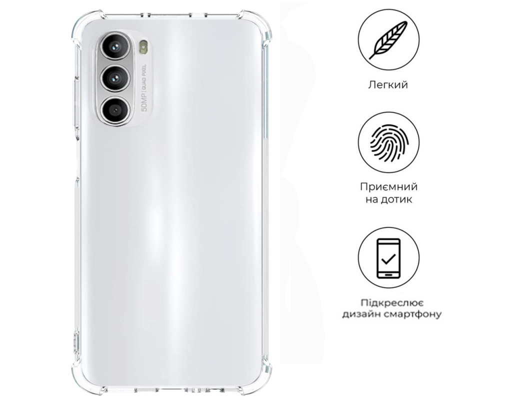 совместимость с моделями - Motorola G52, Motorola G82, Тип чехла для телефона - накладка, Назначение - модельный, Цвет - прозрачный