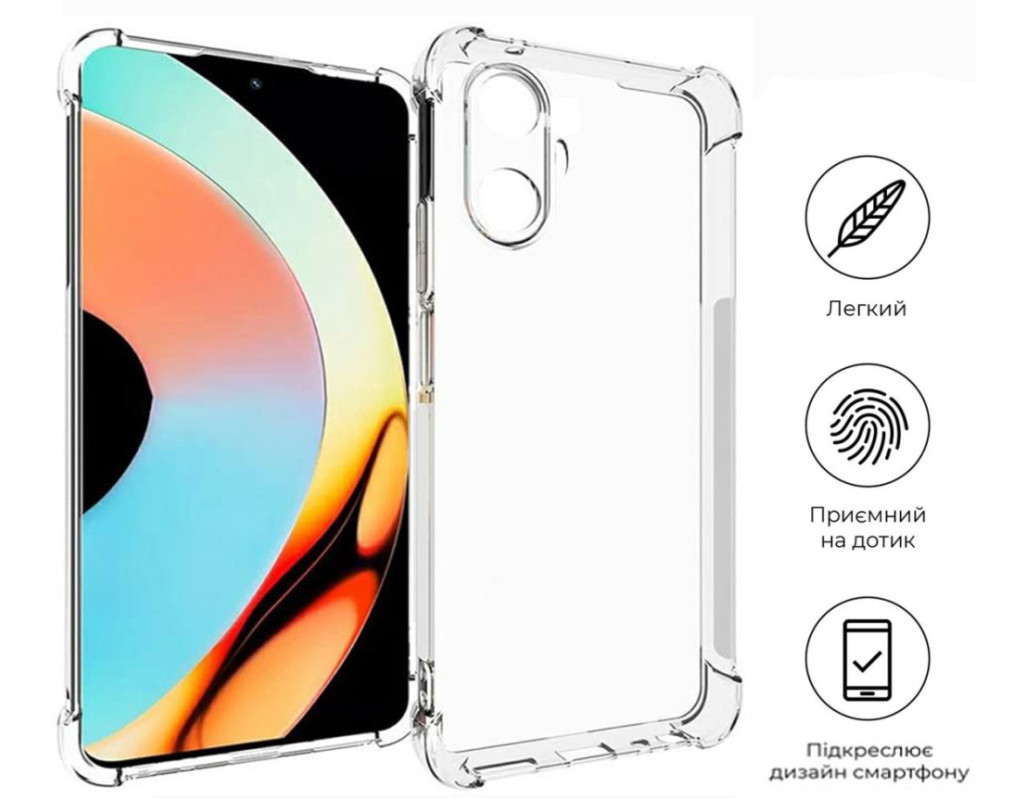совместимость с моделями - Realme 10 Pro+ 5G, Тип чехла для телефона - накладка, Назначение - модельный, Цвет - прозрачный