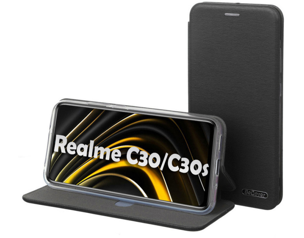 совместимость с моделями - Realme C30s, Realme C30, Тип чехла для телефона - книжка, Назначение - модельный, Материал - полиуретан, Цвет - черный