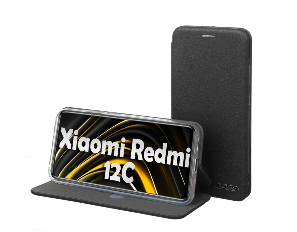 совместимость с моделями - Xiaomi Redmi 12C, Тип чехла для телефона - книжка, Назначение - модельный, Материал - полиуретан, Цвет - черный