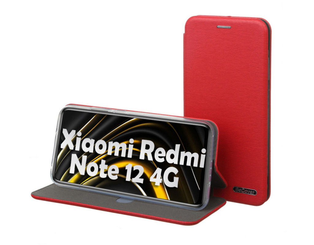 совместимость с моделями - Xiaomi Redmi Note 12, Тип чехла для телефона - книжка, Назначение - модельный, Материал - полиуретан, Цвет - красный