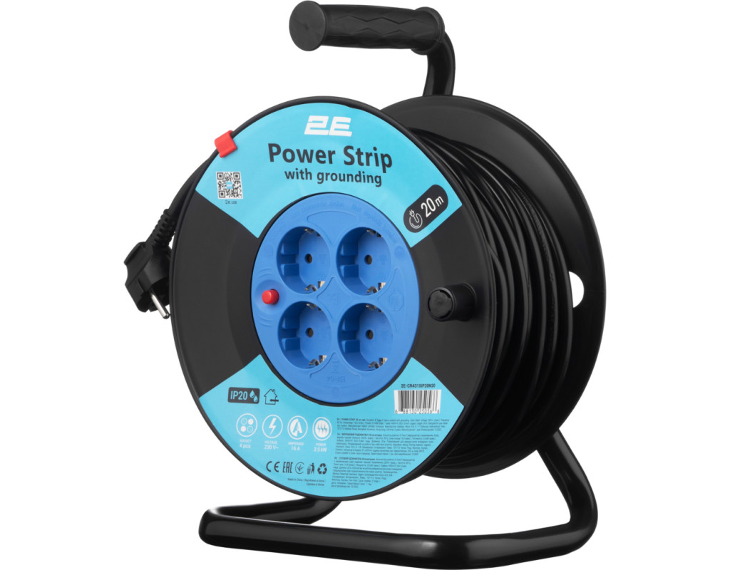 | Сетевой удлинитель 2Е на катушке на 4 розетки типа F (евророзетка с заземлением), вилкой типа F (евровилка с заземлением), степенью защиты IP20, кабелем H05VV-F 3G*1.5мм2, длиной 20 м, черного цвета. Удобное вращение благодаря катушке. Эргономичная удобная ручка для переноски, повышенная стойкость. Предназначена для использования в сухих помещениях. Предназначен для использования в электрической сети 230 В для питания устройств с максимальной суммарной мощностью нагрузки до 3,5 кВт. Корпус изготовлен из огнестойкого пластика, оснащен удобной рукояткой для транспортировки. |
