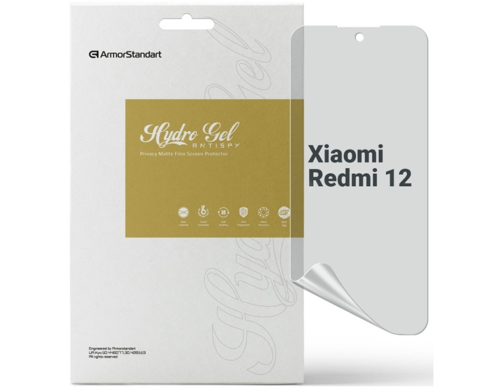 Назначение - для телефона, Вид покрытия - конфиденциальное, защитное, гидрогелевая, Совместимость с моделями - Xiaomi Redmi 12, Количество в упаковке - 1 шт