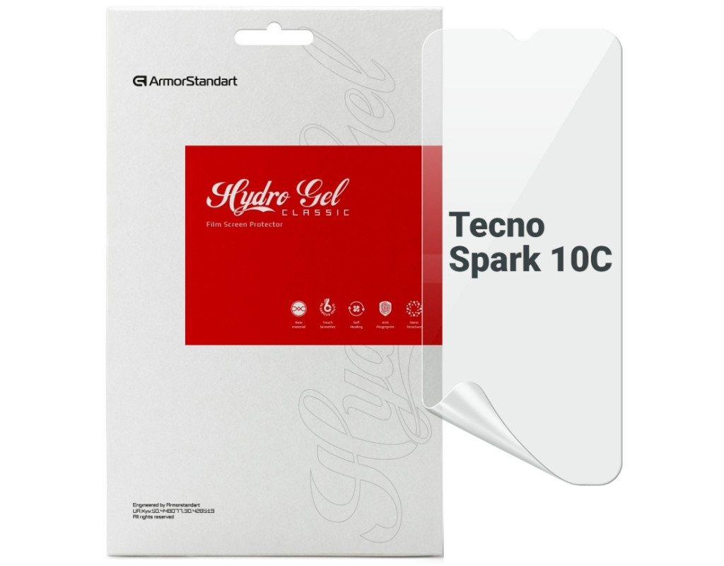 Назначение - для телефона, Вид покрытия - защитное, гидрогелевая, Совместимость с моделями - Tecno Spark 10С, Количество в упаковке - 1 шт
