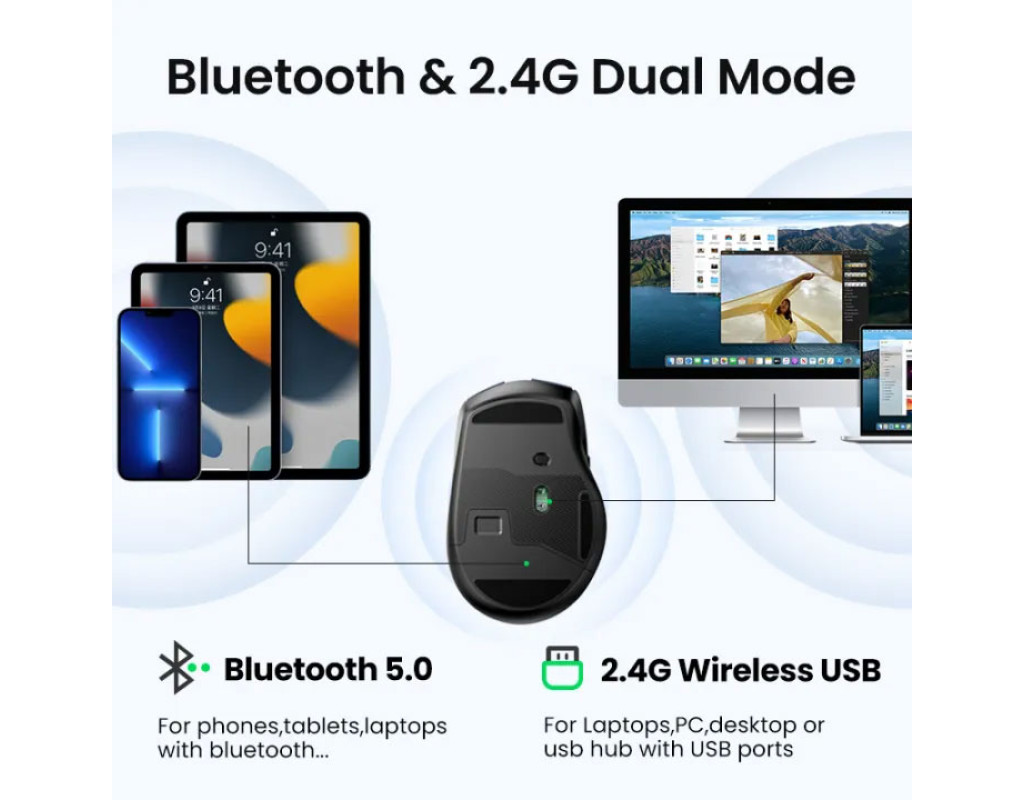 | Мишка UGREEN 2.4GHz MU006, бездротова, Bluetooth, 4000dpi., 4кн.,Silence Design, Сіра |