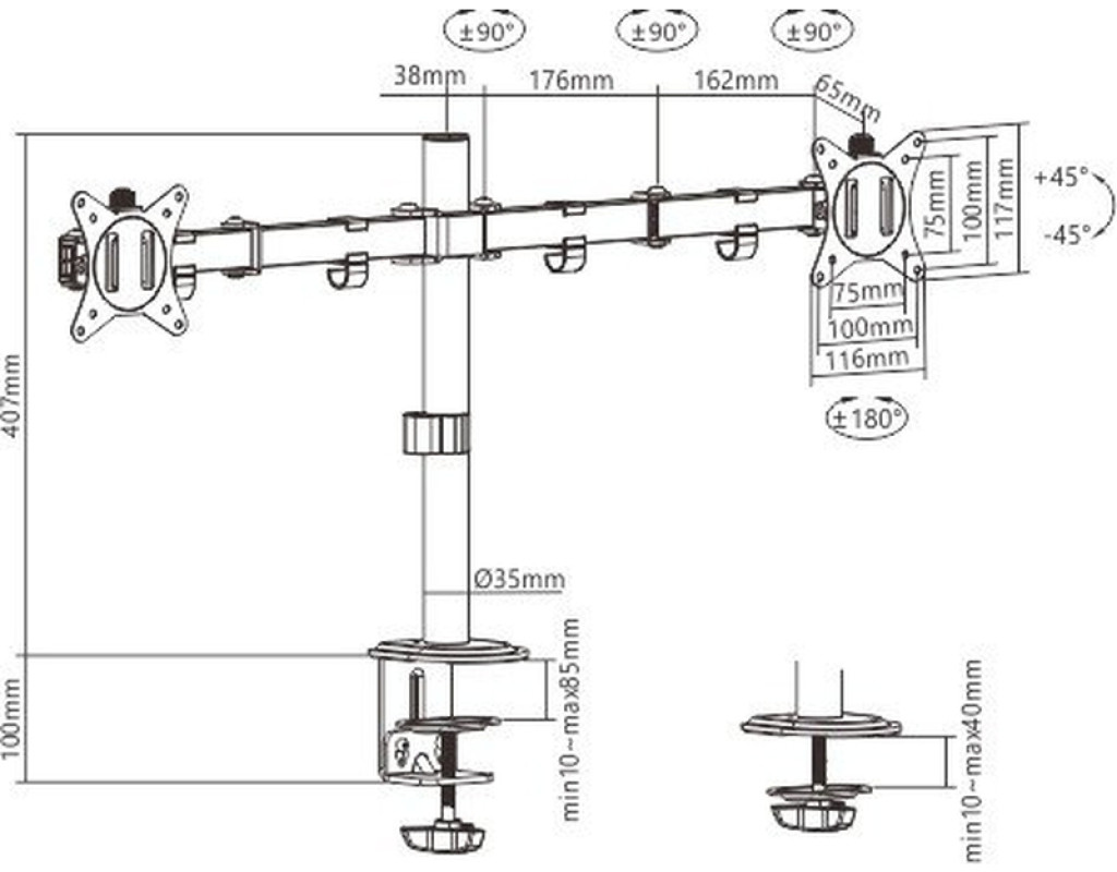 | Кронштейн Gembird MA-D2-01 — это идеальное решение для тех, кто хочет сочетать комфорт и эффективность в работе с мониторами, обеспечивая безупречный порядок на рабочем месте. Этот кронштейн, предназначенный для установки на стол, позволяет не только экономить пространство, но и создавать уникальную, удобную рабочую среду благодаря своим многочисленным функциональным возможностям. Одним из ключевых преимуществ Gembird MA-D2-01 является его поворотно-наклонный механизм с тремя степенями свободы. Он позволяет настроить углы наклона в диапазоне от +45° до -45° и обеспечивает углы поворота от +90° до -90°, что дает свободу изменять положение мониторов для достижения оптимального угла обзора. Кроме того, возможность вращать мониторы на 180° позволяет быстро переходить из альбомного режима в портретный, способствуя выполнению различных задач. Кронштейн поддерживает широкий спектр мониторов с диагональю от 17" до 32", благодаря чему вы сможете легко адаптировать его к вашим нуждам. Совместимость с VESA 75 x 75 мм и 100 x 100 мм обеспечивает универсальность и простоту в использовании с большинством современных дисплеев. Несмотря на легкость конструкции, изготовленной из высококачественной стали, кронштейн может выдержать до 9 кг на каждый из экранов, что свидетельствует о его надежности и устойчивости. Особого внимания заслуживает система кабельного менеджмента, обеспечивающая аккуратность и организованность рабочей поверхности. Оптимальные варианты установки на стол, включая зажим и втулку, обеспечивают надежную фиксацию даже для толщины стола от 10 до 85 мм. Эти решения укрепляют стабильность конструкции, добавляя уверенности при использовании. Эргономичный дизайн Gembird MA-D2-01 разработан для улучшения продуктивности на рабочем месте. Прочность, стиль и функциональность делают его идеальным выбором для профессионалов, которые стремятся эффективно использовать рабочее пространство. Этот кронштейн не только добавляет эстетичности рабочему интерьеру, но и повышает удобство и комфорт в ежедневной работе. Выберите Gembird MA-D2-01 — изящное и надежное решение для современного пользователя, который ценит качество и функциональность в каждой детали. |