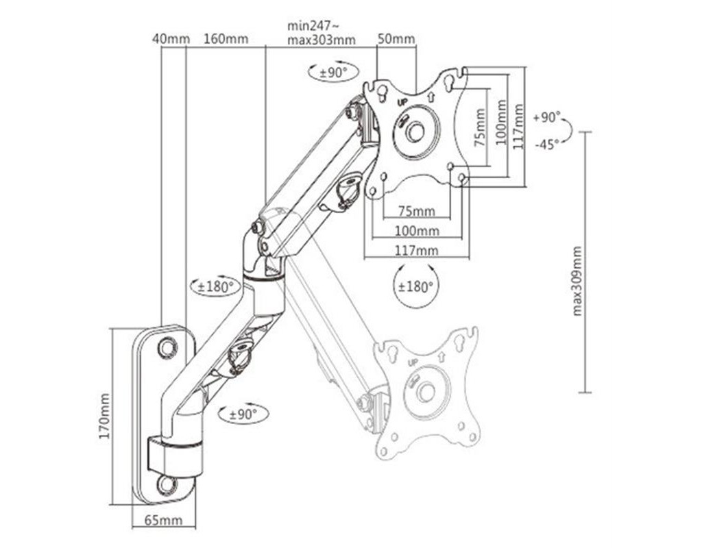 Настенный кронштейн для монитора с одним креплением Кронштейн вращается, выдвигается и втягивается, наклоняется для изменения угла чтения и позволяет поворачивать дисплей из альбомного положения в портретное и т. д. Обеспечивает простое эргономичное позиционирование для снижения нагрузки Работает практически с любым монитором (макс. 27 дюймов) Прочная регулируемая пружина подходит для мониторов весом от 2 до 7 кг Встроенная система кабельменеджмента для организованного и аккуратного рабочего пространства Совместимость с VESA (100 x 100 мм и 75 x 75 мм) |