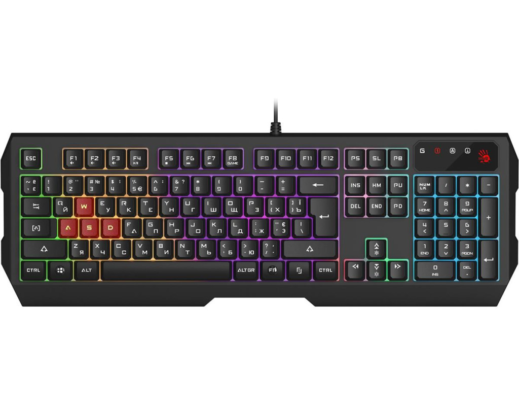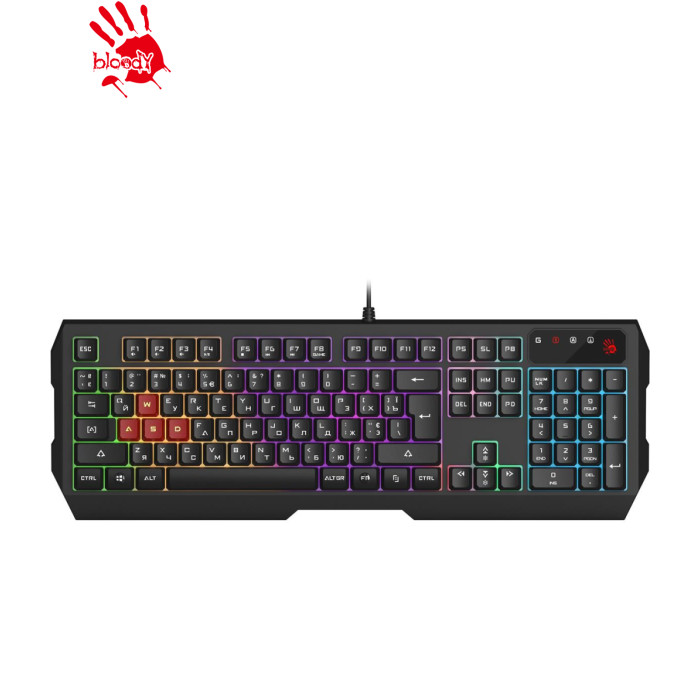 Особенности Регулируемая подсветка. Эффекты подсветки: FN + F12 (Сплошной / Дыхание / Выкл.) Яркость: FN + ^/v Игровой режим. Нажмите Fn + F8, чтобы отключить клавиши «Windows» 1 мс отклик клавиши. Мгновенное выполнение гарантируется технологией ультраопроса 1000 Гц, обеспечивающей сверхбыстрое время отклика 1 мс Программное обеспечение Bloody KeyDominator. Создавайте собственные макроклавиши с помощью программы Bloody KeyDominator, которую можно загрузить на сайте bloody.com Влагозащищенная конструкция и прочный USB-кабель в оплетке - дополнительная гарантия долгих лет службы Мультимедийные горячие клавиши. Нажмите FN + F1~F7, чтобы использовать горячие клавиши мультимедиа. Отключение звука, громкость -/+, воспроизведение/пауза, стоп, предыдущий/следующий трек |