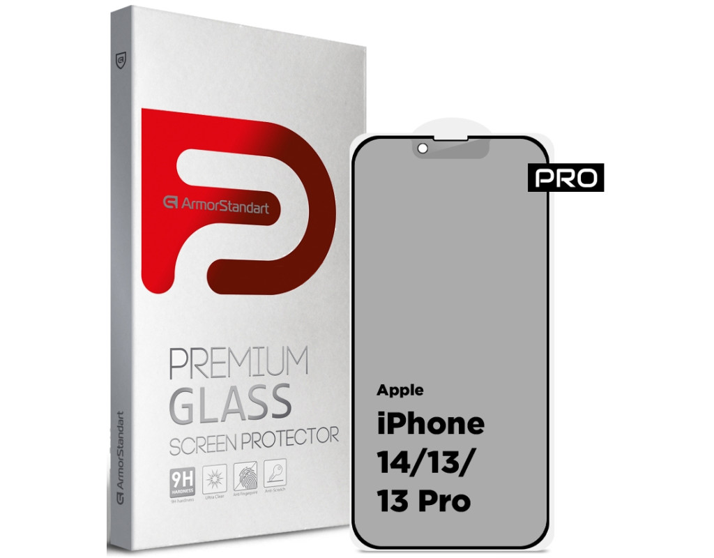Стекло защитное Armorstandart Pro Anti-spy Matte Apple iPhone 14/13/13 Pro Black (ARM68603)
