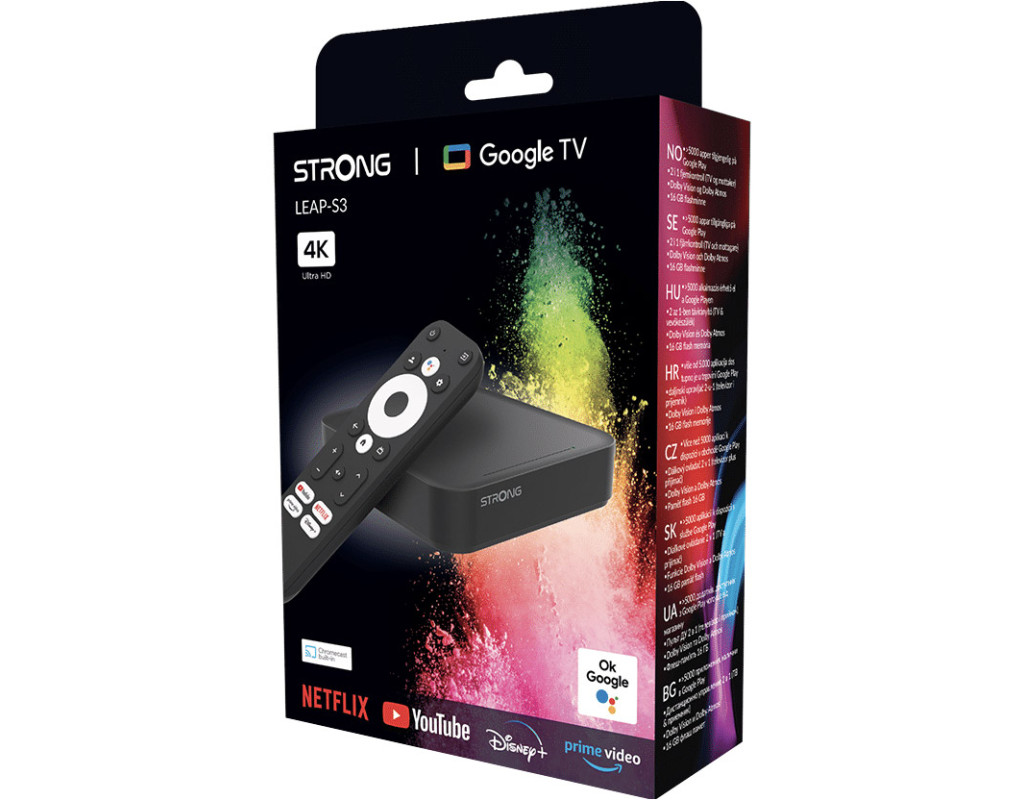 Эта небольшая и компактная смарт-приставка Google TV — правильный выбор для вашего телевизора. Подключите STRONG LEAP-S3, чтобы обновить свой телевизор до Smart TV с прямым доступом к магазину Google Play! Эта приставка Google TV оснащена последней версией Android 11 и предлагает вам отличный пользовательский интерфейс. Кроме того, он сертифицирован Google и дает доступ к многочисленным приложениям, потоковым сервисам и многому другому. Наслаждайтесь любимыми фильмами прямо с Netflix, YouTube, Prime Video или Disney+. Благодаря эффективному пользовательскому интерфейсу вы можете быстро найти и насладиться любимым развлечением. LEAP-S3 также поставляется с такими обязательными функциями, как разрешение 4K UHD, декодирование H.265, двухдиапазонный Wi-Fi 5, функция Chromecast и многое другое. Dolby Vision-Atmos обеспечивает лучшее изображение и звук, которые вы когда-либо видели, для вашего любимого фильма. С помощью полнофункционального Google Assistant вы можете управлять воспроизведением, воспроизводить или возобновлять телепередачи и фильмы с помощью голосовых команд и получать ответы на простые вопросы. Порт USB, Bluetooth 5.0, HDMI версии 2.1 и порт Ethernet дополняют комплектацию и предлагают беспрецедентные возможности просмотра телевизора. |