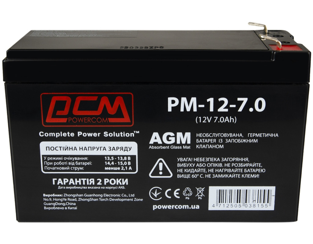 Свинцово-кислотный аккумулятор POWERCOM герметизирован, не обслуживается, с системой рекомбинации газов (класс акб VRLA). Изготовлен по AGM технологии (электролит абсорбирован в стекловолоконном сепараторе). Аккумуляторная батарея POWERCOM рекомендована для использования как в буферном, так и в циклическом режимах работы. Предназначена для применения в переносных и портативных приборах, а за счет стабильно высокой однородности внутреннего сопротивления изделий отлично подходит для использования в источниках бесперебойного питания и блоках резервного энергоснабжения. ОСОБЕННОСТИ: