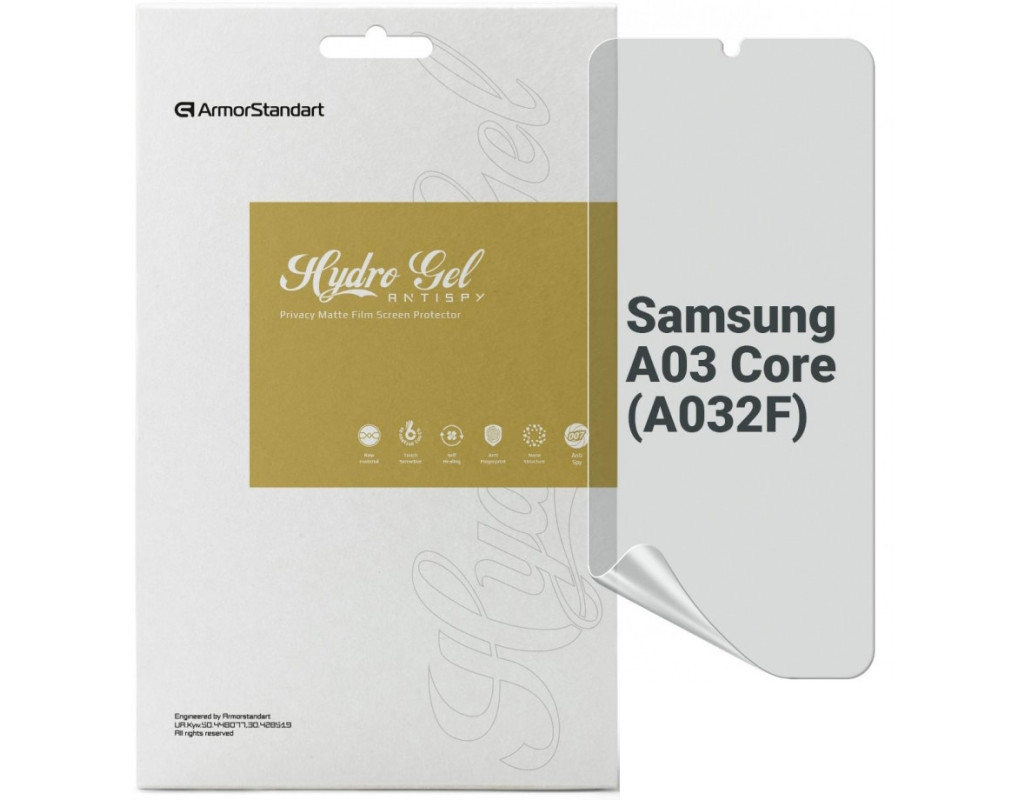 Назначение - для телефона, Вид покрытия - конфиденциальное, защитное, гидрогелевая, Совместимость с моделями - Samsung Galaxy A03 Core, Количество в упаковке - 1 шт
