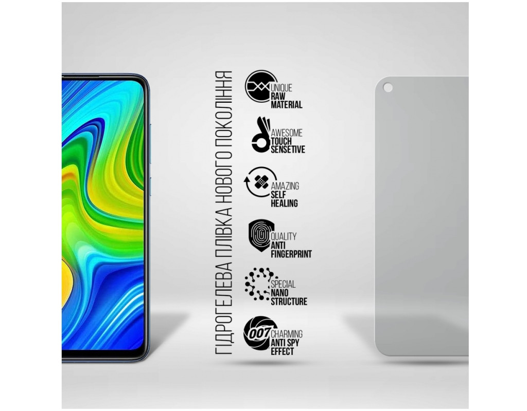 Назначение - для телефона, Вид покрытия - конфиденциальное, защитное, гидрогелевая, Совместимость с моделями - Xiaomi Redmi Note 9, Количество в упаковке - 1 шт