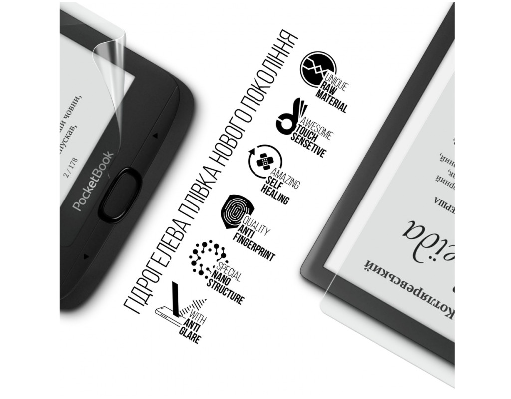 Назначение - для електронной книги, Вид покрытия - защитное, гидрогелевая, Совместимость с моделями - PocketBook 617, Количество в упаковке - 1 шт
