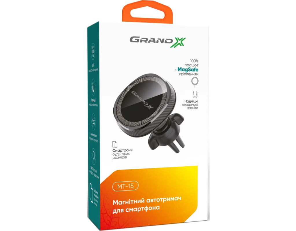 Магнитный автодержатель Grand-X MT-15 с креплением под MagSafe позволяет установить смартфон на держатель без замены чехла или металлической пластины, что упрощает использование смартфона и не влияет на возможность беспроводной зарядки. А прочные неодимовые магниты надежно удерживают устройство на креплении даже на дорогах с некачественным или не отремонтированным покрытием. Удобство Надежность |