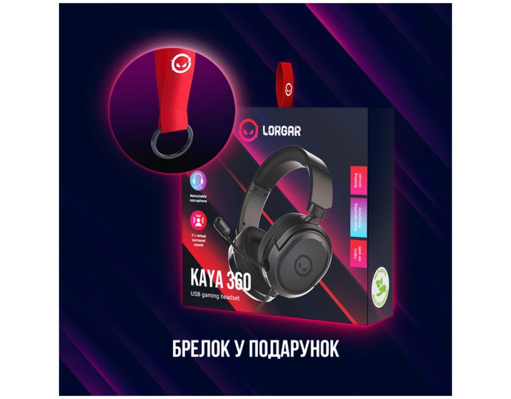 | Дизайн и сборка Kaya 360 обязательно вас впечатлит. Гарнитура имеет цветовую схему под графит с глянцевым логотипом Lorgar на боку. Модель легкая, весит всего 312 грамм, что делает ее удобной для ношения на протяжении длительного времени. Регулируемое оголовье гарантирует надежную посадку для любого размера головы. Ушные чашки и амбушюрыВращающиеся ушные чашки обеспечивают максимальное удобство во время длительных игровых сессий. Тканевые амбушюры не раздражают уши даже после часов использования. Ушные чашки также можно повернуть для удобного хранения гарнитуры. Виртуальное объемное звучаниеГарнитура Lorgar Kaya 360 оснащена технологией 7.1 виртуального объемного звучания, которая обеспечивает кристально чистое аудио для погружения в игровой процесс. Качество звука исключительное, позволяя игрокам слышать каждую деталь в их играх, от шагов до взрывов. Окажитесь прямо в центре действия! МикрофонВыдвижной микрофон с шумоподавлением обеспечивает четкое общение с вашими товарищами по команде, а встроенный светодиод покажет что вас слышат. Микрофон можно легко убрать обратно в корпус гарнитуры, когда он не используется, что придает гарнитуре элегантный вид. Управление звукомКолесо регулировки громкости и кнопка мгновенного отключения звука позволяют игрокам регулировать звук не отвлекаясь от игрового процесса. ПодключениеПодключение через USB-A с функцией Plug & Play упрощает подключение Kaya 360 к самым популярным игровым платформам. Наслаждайтесь беспроблемной игрой прямо из коробки. Брелок внутриНе забудьте достать свой брелок от Lorgar, прежде чем вы выбросите упаковку! |