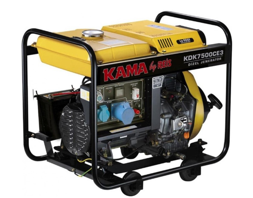 Генератор KAMA дизельный KDK7500CE3, 3-ф. 220/400V, 50Hz, 6.9kVA/5.5kW, 12.5 л, 1.5 л/ч, ручной/стартер (KDK7500CE3)