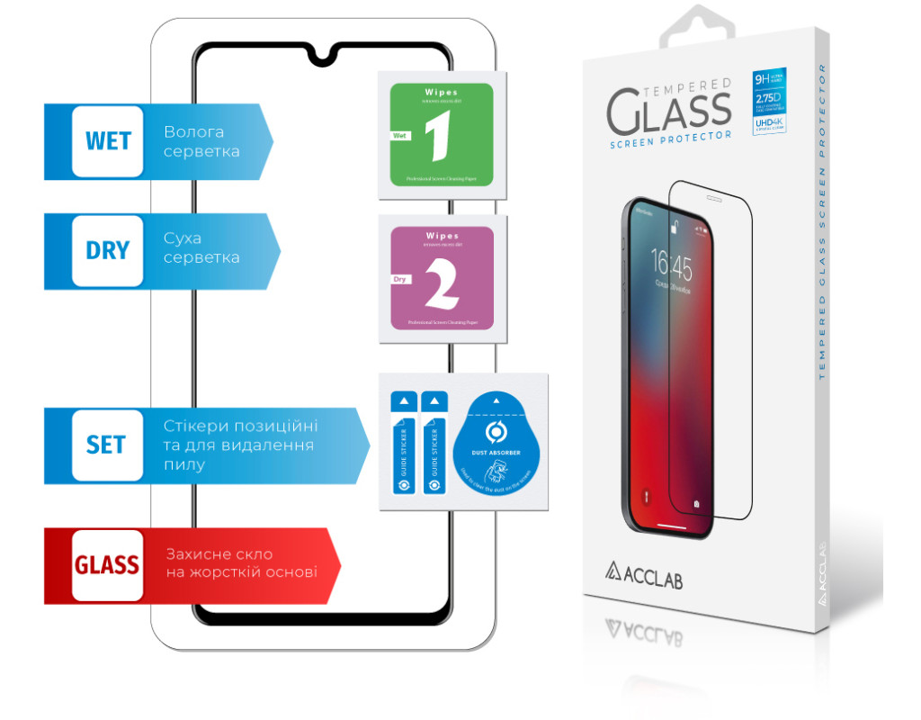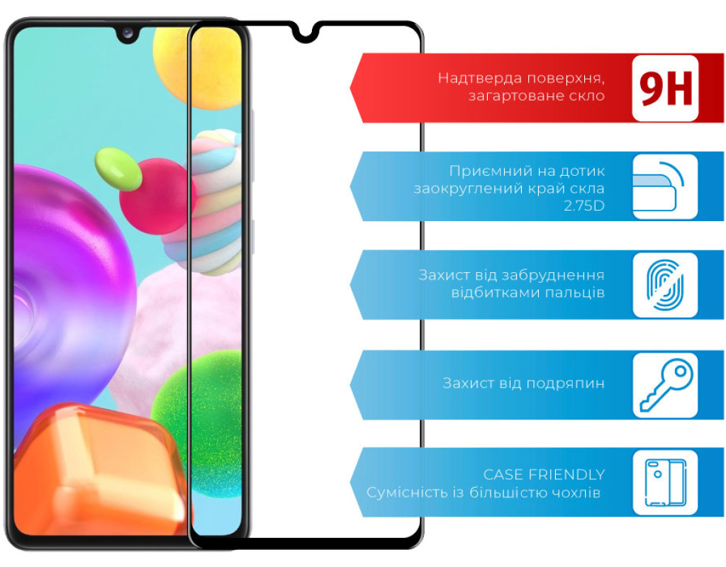 Назначение - для телефона, Вид покрытия - защитное, Совместимость с моделями - Samsung Galaxy A41, Особенности - прочность: 9Н, влажная салфетка, Количество в упаковке - 1 шт