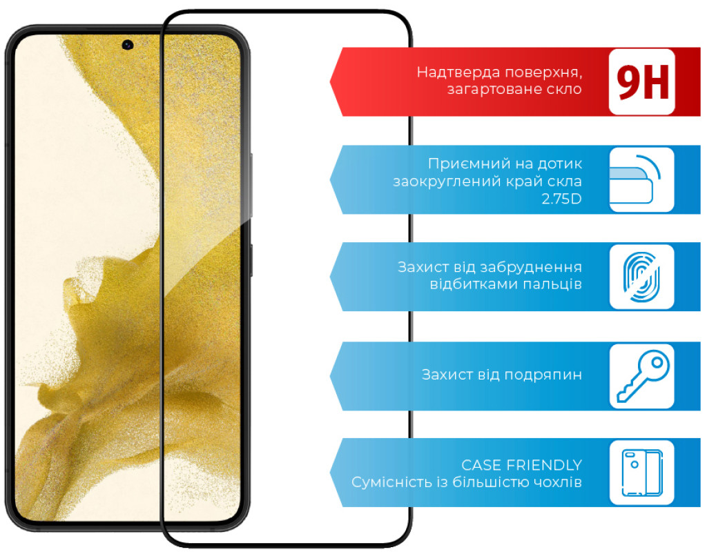 • Уровень прочности: 9H. Минимизирует риск повреждения передней панели мобильного устройства при повседневном использовании.