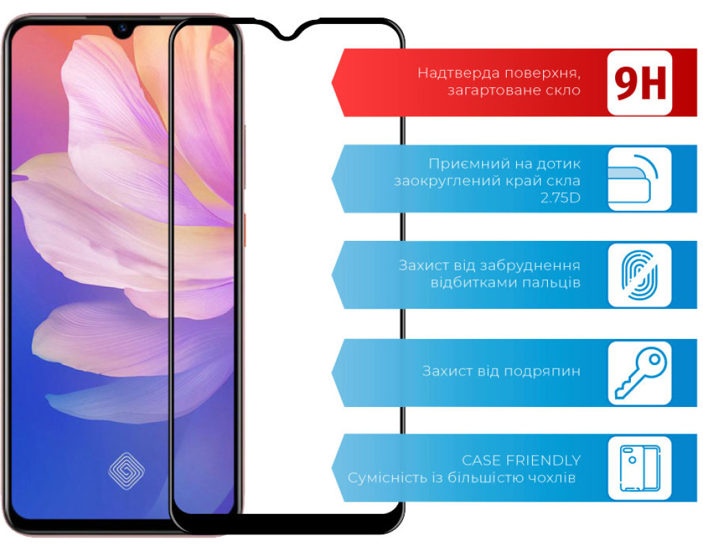 • Уровень прочности: 9H. Минимизирует риск повреждения передней панели мобильного устройства при повседневном использовании.
