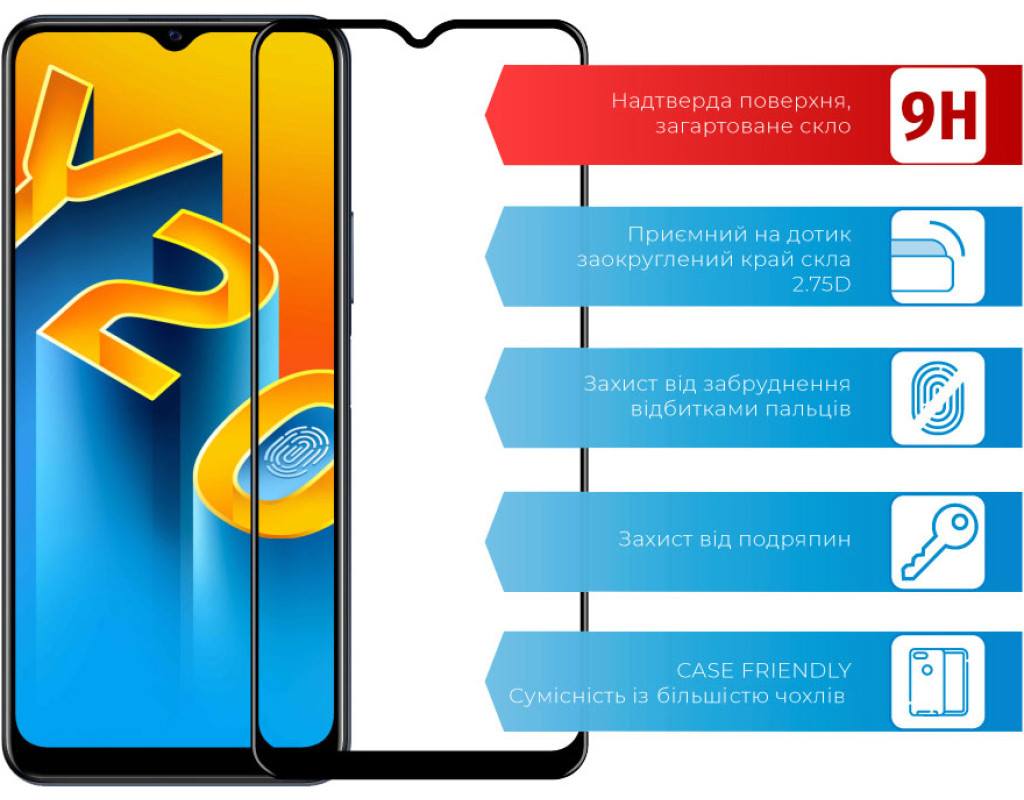 Назначение - для телефона, Вид покрытия - защитное, Совместимость с моделями - vivo Y20/Y20i, Особенности - прочность: 9Н, влажная салфетка, Количество в упаковке - 1 шт